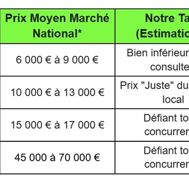 Nous avons relevé les tarifs moyens affichés en ce début d'année 2026 sur les sites des gros acteurs nationaux et des plateformes de mise en relation. Voici la différence avec nos tarifs d'artisan local sans intermédiaires.